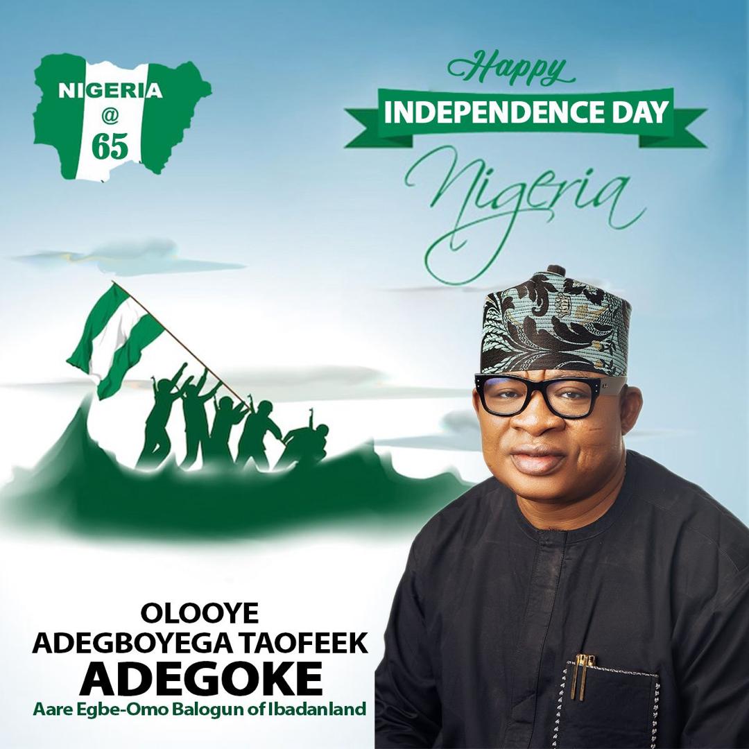 As Nigeria marks her 65th Independence Anniversary, Olooye Adegboyega Taofeek Adegoke, Aare Egbe-Omo Balogun of Ibadanland, has extended heartfelt congratulations to the government and people of Oyo State with Nigeria at large on the historic occasion.